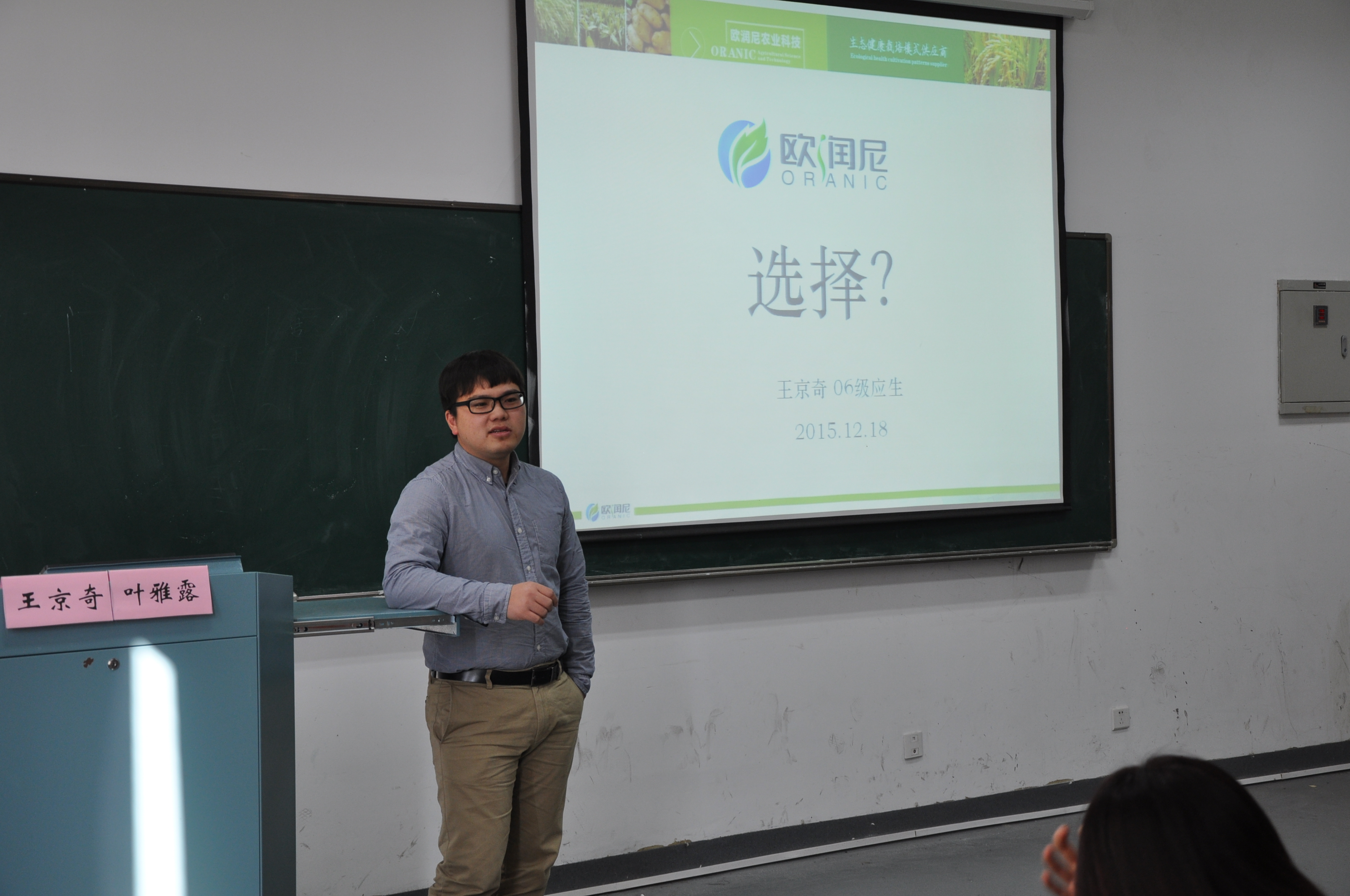 王京奇是我校农学院06级毕业生,他像其他同学一样,在毕业的时候并不知道自己想要去的方向,这时正好学校有“2+2”的项目,他也符合项目的标准,于是就留校当了两年的辅导员。但这个辅导员可不是农学院的辅导员,因为他想以后更容易找到工作,于是他找到国贸的老师请求在国贸专业任职两年辅导员并在国贸专业读两年硕士,学校答应了他的请求。辅导员这两年按他的说法就是继续玩了两年,对自己的职业生涯也没有清晰的认识。但是,上研究生的时候,他开始意识到再不规划自己的未来可能以后真的不会再有大的发展。这时,他找到了一个初创型的公司——欧润尼,巧的是这个公司仍然是农业类公司,他是因为想读国贸有一个比较体面的工作,但是绕了一圈又回到了农业。虽然有这样的情绪,但他还是准备先了解了解。他和老板跑了很多市场,晚上都是1点以后才回宿舍,在这个过程中他重新认识了农业,对农业产生了极大的兴趣。从此决定扎根农业,在农业标准化服务的市场上走出自己的一片天。现在,欧润尼已经初具规模,准备在新三板上市,并且和天猫的易果生鲜合作,打造农产品电商新品牌。王京奇对在座的学弟学妹们最后说的一句话是:找到自己的发力点才是最重要的。