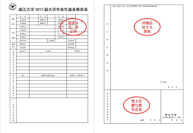 注意:推荐表必须在1张纸内(间距可调、空白行可调可删),必须使用双面打印,手写签名。