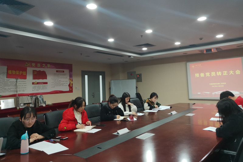 11月30日晚,生物所研究生第二党支部在农生环C座912召开预备党员转正大会,讨论决定预备党员冯林同志的转正事项。支部全体党员参加了大会,会议由支部书记戚菊峰主持。会议通过并宣布了冯林同志从预备党员按期转为正式党员。