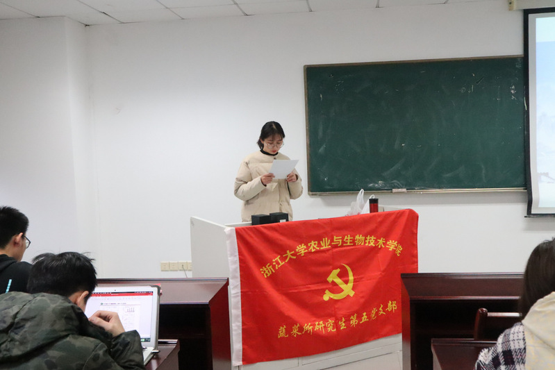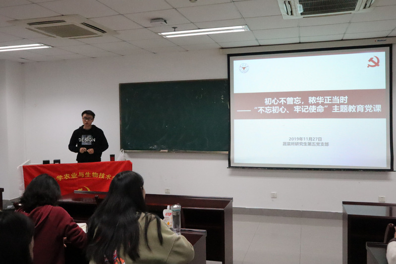 11月27日下午,蔬菜所研究生第五党支部于农生环A座A526开展了以“初心不曾忘,秾华正当时”为主题的“不忘初心,牢记使命”主题教育党课以及预备党员转正大会,会议由党支书顾晓华同志主持。