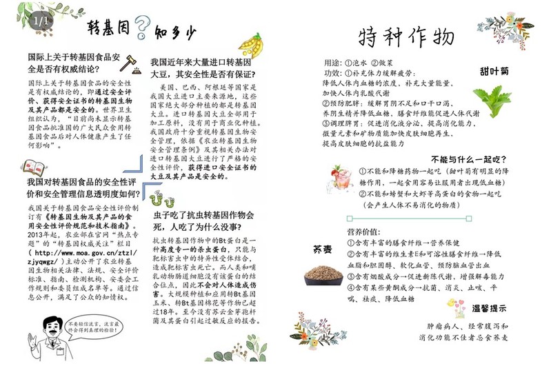 活动前期,支部同志分工合作,通过文献搜索、资料查找和课堂学习等途径,分别制作了与特种作物和转基因作物相关的活动宣传单,力求真实科学、通俗易懂、贴近生活。