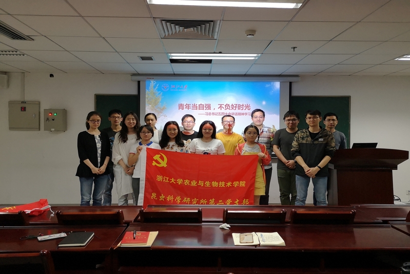 5月22日,昆虫所研究生第二党支部成员于C座1012开展党支部党员大会,由支部书记张厚洪同志带领全体成员学习习近平总书记在纪念五四运动100周年大会上的讲话。