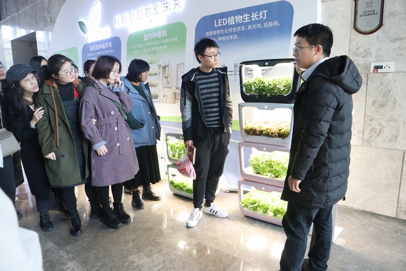 四维生态科技(杭州)有限公司坐落于杭州滨江区英飞特科技园内,集研发、生产、销售及技术服务于一体,面向全球推广系统化、智能化、标准化的农业种植解决方案和系统设备及服务。支部成员首先在公司栽培工程师刘威博士的带领下,参观了公司室内种植机展厅及LED照明设备,通过其讲解,了解到该室内种植机模拟了植物适宜的生长环境,减少了地域、季节、气候等环境因素对植物生长的影响,可全年种植绿色无污染的新鲜果蔬,并且集科普、教育、生活等多方面功能于一体,是农业与第三产业服务业相结合的典型案例。