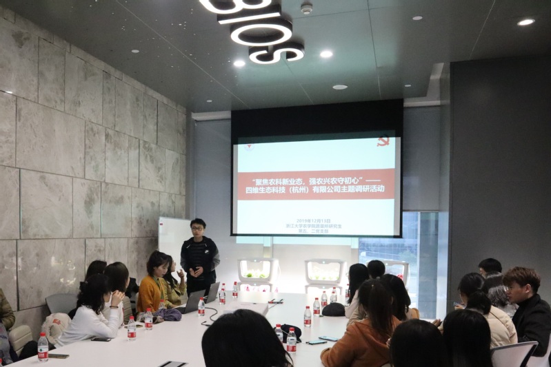 12月13日下午,蔬菜所研究生第五、第二党支部成员一同前往四维生态科技(杭州)有限公司开展“聚焦农科新业态,强农兴农守初心”的主题党日活动,旨在深入调研设施园艺发展现状、探究农业产业融合趋势,思考设施园艺及都市农业如何进一步服务农业农村现代化,激发农科学子学农爱农情怀。