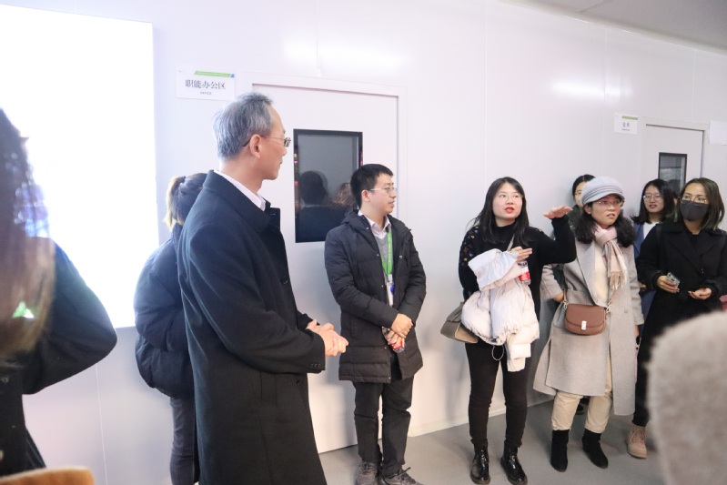 随后,支部成员重点参观了公司的核心项目——植物工厂及集装箱种植系统,通过高精度智能计算机和传感系统,对植物生长全过程的温度、湿度、光照、CO2浓度以及营养液等环境条件进行自动控制,使植物生长过程不受或很少受自然条件影响,实现农作物周年连续生产,节约农用耕地和水资源,植物无污染、无农药、无重金属残留,代表着农业与第二产业的紧密结合,是智能化、机械化、信息化的典型代表。由于支部所在课题组也利用植物工厂进行园艺作物栽培管理,便就栽培管理中病虫害的防治、栽培介质的选择、光质调控等问题与工作人员进行了详细的交流,在此过程中,支部成员对于现代农业的发展有了更为理性的认识,学农爱农情怀进一步激发。