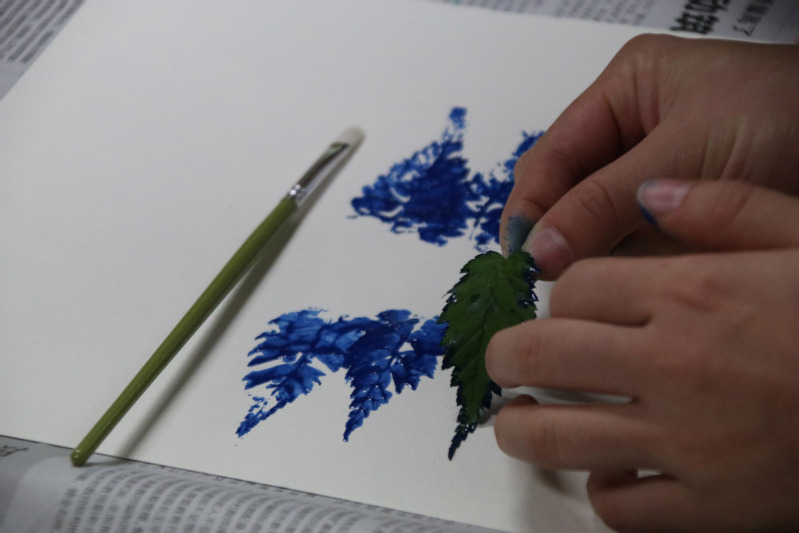 (支部成员在拓印叶片)