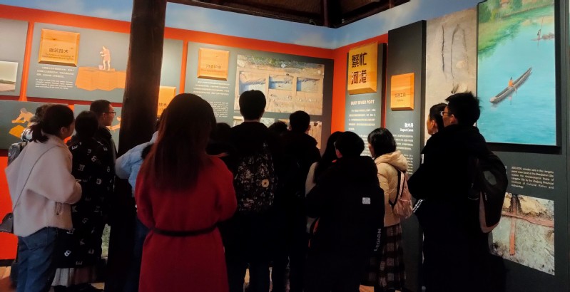 考古体验地包括了湿地营城展示馆和“水城中的劳作与生活”展示馆。在导游的详尽讲解下,同志们了解到良渚古城丰富的地域资源——玉料、石料、木料还有取之不尽的山禽野兽与野果珍馐。河道与作坊片区还展示了良渚先民适应自然、利用自然、改造自然的高超水平,他们创造性地使用了垫石、堆筑、草裹泥以及护岸木桩等工艺营建古城,还有古城内外发现的码头、独木舟、竹筏等遗迹遗物,也生动再现了良渚先民水乡中的生活画面。一眼千年,良渚古城的生活环境以这种独特的方式重现我们眼前。