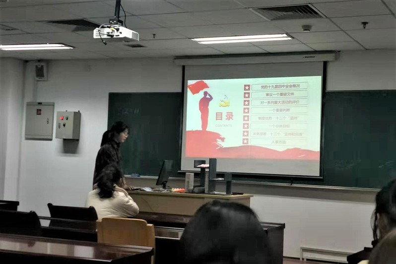 首先,童琪同志分享了自己学习十九届四中全会的学习心得,分享内容包含了从全会的概况到会议内容的诸多方面,在童琪同志的分享下,大家了解到了我国制度以及治理体系等方面的诸多优越性,是对十九届四中全会的有一次理解与学习,建立制度自信,认识到党的领导的正确性与重要性。
