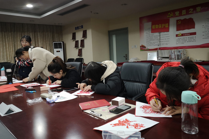 第三个环节是“新岁剪纸送祝福,妙手生花迎新春”。本环节中,副书记张晓丽同志向大家分发鼠年剪纸,各位同志挑选中意的样式,在红色卡纸上,大家拿起刻刀,沿着图案刻出一幅幅生动漂亮的剪纸,让大家充分体验到党支部活动的充实与快乐,增加支部凝聚力。