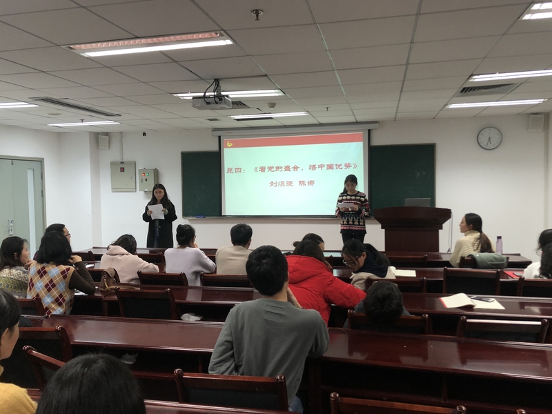 随后,两支部各派出两名同学上台进行诗歌朗诵,题目分别为《看党的盛会,悟中国优势》和《国的七十年》,他们在再创作的基础上融以个人爱国情怀,慷慨激昂地完成朗诵。其中周琪欢同学更是发挥了她的独特嗓音,声情并茂地表达出对祖国的热烈而真挚的爱。各支部还结合自身实验室、支部等特色元素,设计了支部LOGO,并向其余同学展示说明。