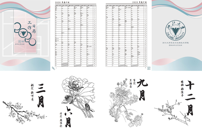 学以致用,打造专业型支部。党支部结合园林专业特色,发动全体支部党员共同设计打造了一本2020年园林党支部学习日历。这本支部学习日历封面页及内页设计均由支部成员设计完成,包含的元素丰富,不仅有党员的假期读书心得,还有由支部成员精心绘制的每月代表花卉图。支部计划开学后把日历印制成册,分发到每一位园林学子手中。