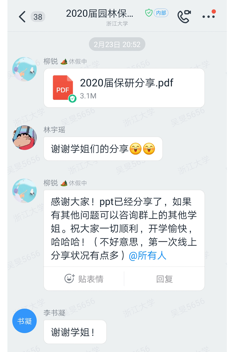 构建党建“同心圆”,打造服务型党支部。在开学后的第一个周末,园林本科生党支部协同风景园林协会组织了一场特别的“钉钉线上保研分享会”,支部党员柳锐、应佳欣分别结合自身的发展历程,耐心地为2020届园林本科生进行了经验分享与答疑解惑,分享活动受到同学们一致好评。