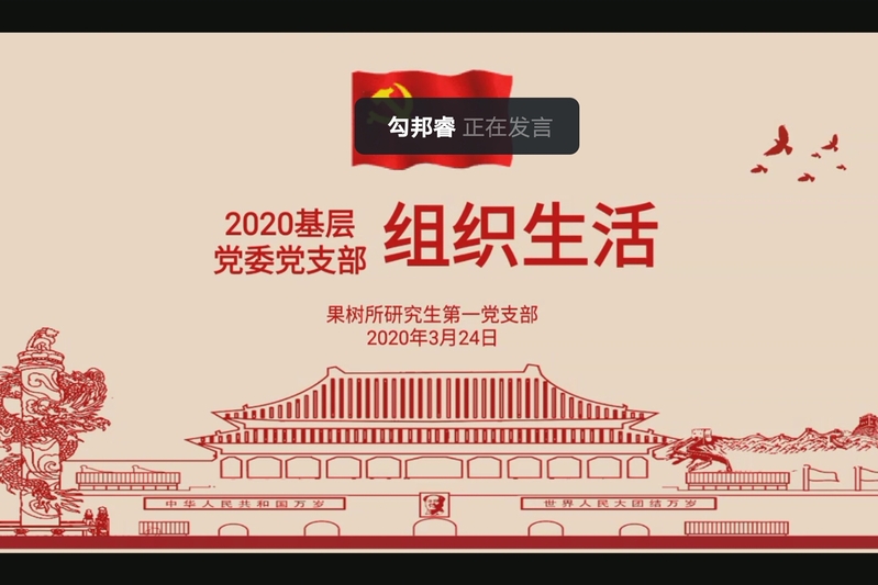 3月24日晚,果树所研究生第一党支部充分借助浙大钉网络学习平台,线上召开“齐心抗疫情,党员话担当”疫情防控主题党日活动,会议由勾邦睿同志主持。