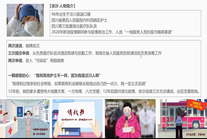 之后,本支部全体党员同志都分享了疫情期间的感动人物和事迹,共分享20个各行各业的精彩故事。陈白云分享73岁的李兰娟院士,在救治病人中平均睡眠不足三小时,奋战一线的故事;尹彦莹分享四川“雨衣妹妹”刘仙逆行武汉,免费给医护人员送餐的故事;章璇分享温州海外华侨在物资缺乏情况下全力支援温州的故事;乔琳分享浙大师姐吴姝瑜在疫情期间当社区防疫志愿者的故事等。从抗战一线医护人员到社区工作人员到群众志愿者,光辉事迹遍布各行各业,各个年龄阶段。他们展现着无私的奉献精神,值得我们党员同志致敬、学习。