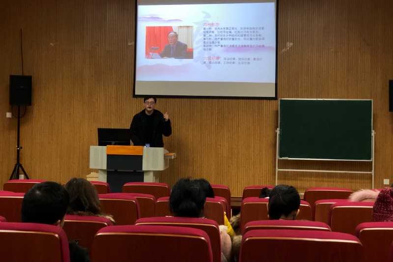 自身学习的同时,也需要倾听优秀党员同志的见解。因此邀请了于子三宣讲团的刘锐诚同志给大家上了一堂党课。从学生党员的角度讲述“不忘初心建时代新廉”,古人有云“公则吏不敢慢,廉则民不敢欺”,古时候的“廉”多形容官员,而新时代的“廉”并不仅仅指个人,更是思想道德、文化氛围、职业文化、社会文化的廉洁。作为学生党员,廉洁是我们的基本行为准则,也是立身之本,处事之道。