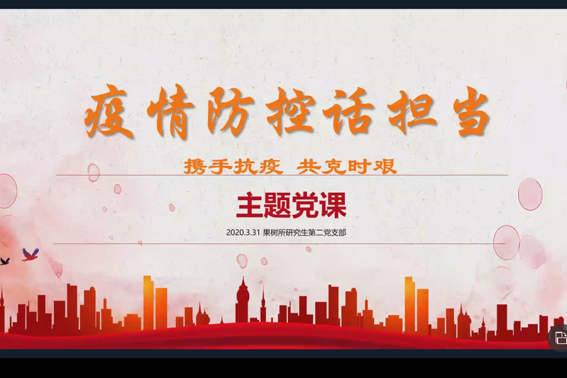 3月31日晚,果树所研究生第二党支部借助线上学习平台,开展了线上会议,进行了“疫情防控话担当”的主题党课和组织生活会,全体党员参加会议,支部书记成波同志主持。
