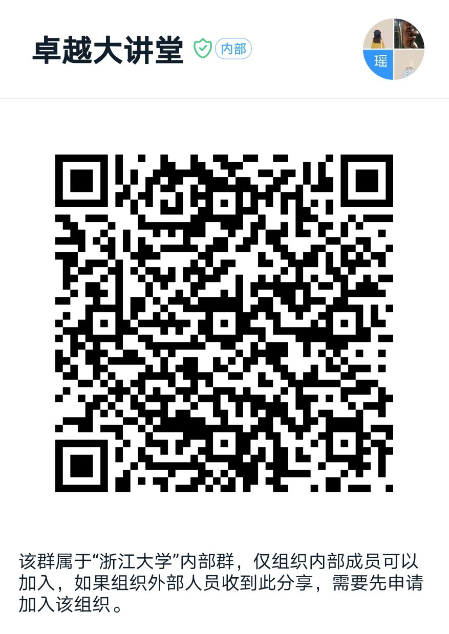 本活动实行签到签出制度,“卓越大讲堂”活动不保存回放,需在钉钉群观看直播时长不少于90分钟,并在会后攥写不少于200字的心得体会,由各班班长收集整理并于本周五(2021年1月1日)晚23:59前打包上交至邮箱ZJUCABSU_APD@163.com,2017、2018、2019级本科生以自愿原则参加,可作为【形策II课时】: