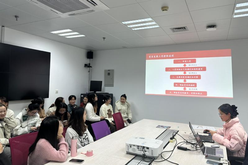 本次党课围绕党员发展工作中的重要流程、具体步骤以及注意事项展开,内容涵盖了从发展对象的推荐、考察到最终审批的全过程,重点讲解了如何严格按照党章要求,确保发展党员工作具有高度的政治性、严肃性和规范性。课上,陈佳艺通过详细的案例分析,帮助党员们更好地理解党员发展工作中的关键节点,如发展对象的思想政治表现、工作表现和群众基础的考察方法,如何做到公开、公正、透明地开展党员发展工作等等。