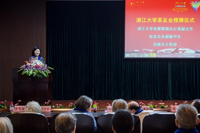 活动第三项是浙江大学校友总会茶友联谊会授牌仪式。党颖女士代表校友总会上台致辞并授牌。活动第四项是2017全球茶业创新创业论坛。吴宏耀校友、郑国建先生、中粮集团江苏南通及泰州分公司总经理吴克俭校友、渡边修治教授、尹晓民校友、绍兴御茶村茶业有限公司董事长兼总经理刘志荣先生、黄正义先生和苏一中先生分别带来了《漫谈茶业供给侧结构性改革》、《铁观音加工技术创新实例》、《日本茶产业创新》、《践行一带一路,创新茶叶出口》、《打开茶产业体系创新时代之门》、《用文化自信的理念,用科技创新的路径做实做优茶产业》、《茶产业发展的特色之路》的精彩报告。各位行业精英齐聚启真湖畔,共商茶产业创新创业之路,为全球茶业的腾飞插上翅膀。