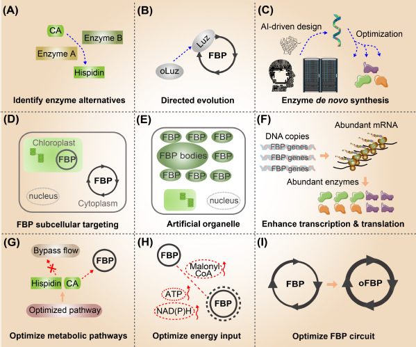 尽管FBP系统具有优于传统发光技术的性能和优势,但要实现大规模应用,仍有挑战需要克服。目前的植物发光强度仍需大约一个数量级的提升,才能满足商业照明标准。同时,也需要解决基因逃逸(如通过花粉传播)等生物安全性问题。值得关注的是,人工智能(AI)和合成生物学的深度融合正在加速解决这些问题。AI能够通过预测突变效果,对发光酶进行定向进化和从头设计,从而提升酶的活性和稳定性。此外,AI还支持系统层面的代谢通路优化,以识别瓶颈并增强底物流。这些先进的工具正在推动FBP技术更快地从理论走向实际应用,将我们带入一个可持续的、由“活体照明”点亮的新时代。