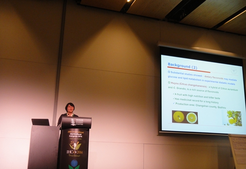 On August 22, Dr. Li gave an oral presentation entitled ‘Effects of Huyou (Citrus changshanensis) fruit extracts on glucose consumption in human HepG2 cells and their hypolipidemic activity in mice’ in the section of ‘Fruits and vegetables for human health’. In addition, she introduced the recent progress of evaluation of nutritional quality of fruit carried out in Fruit Science Institute of Zhejiang University.