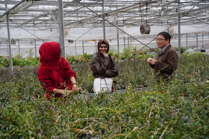 如果说参观历史陈列馆是为了理解学科的根,那么走进温室大棚,则让留学生们真切触摸到了现代农业科技的叶。在包劲松教授带领下,大家实地观摩了铁皮石斛的精细化栽培与马铃薯的高效种植试验,切身感受到核农学从基础研究到应用实践的延伸与拓展。