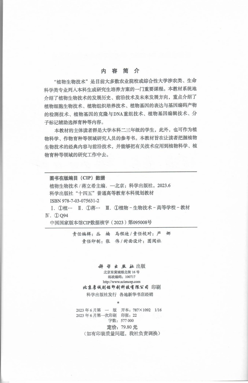 《植物生物技术》---蒋立希-2023年(第一版)