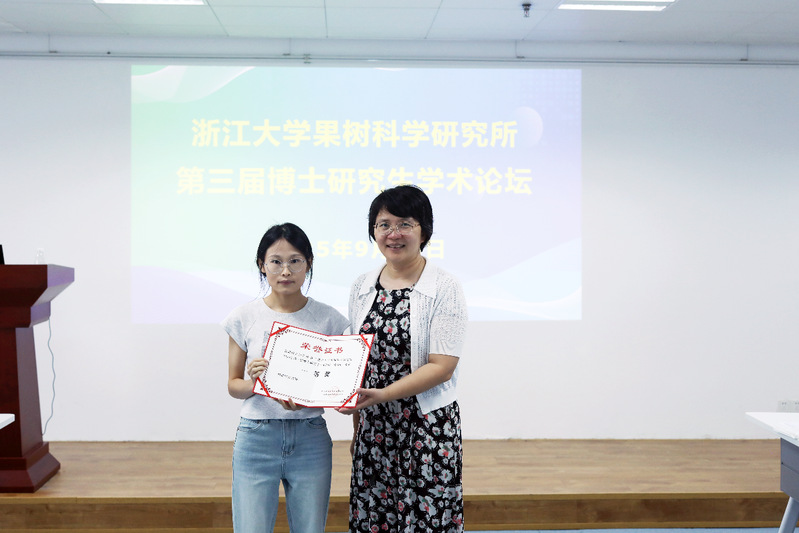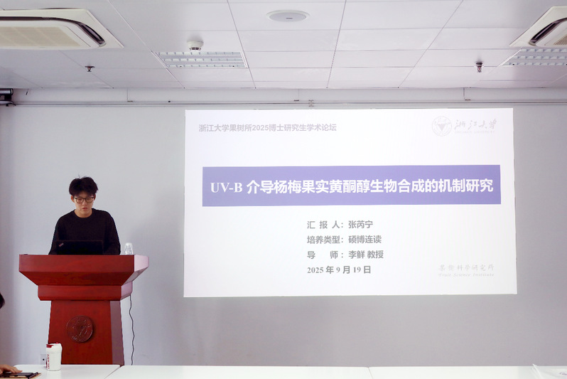 2025年9月19日,浙江大学果树科学研究所第三届博士研究生学术论坛在农学院A座666会议室成功举办。学院副院长梁岩教授出席。果树科学研究所所长李鲜教授,副所长石艳娜研究员,以及徐昌杰教授、白松龄长聘副教授、李栋栋特聘研究员、倪隽蓓特聘副研究员担任专家评委。论坛由副所长吴迪教授主持。