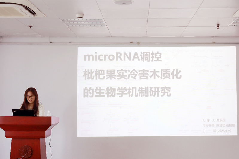 梁岩副院长为本次博士研究生论坛致辞。她首先对论坛的顺利召开表示热烈祝贺,并对论坛的持续举办给予了肯定。梁院长指出,论坛充分展现了果树所研究生欣欣向荣的科创活力。对于与会学生来说,这既是对阶段性研究成果的总结,也为同学们提供了重新梳理课题、获取积极反馈的重要机会;同时,通过现场报告与交流,与会者不仅能够锻炼成果凝练能力与表达能力,更能够在学术对话中激发灵感、拓展视野。最后,梁院长表达了对本届论坛圆满成功的诚挚祝愿。